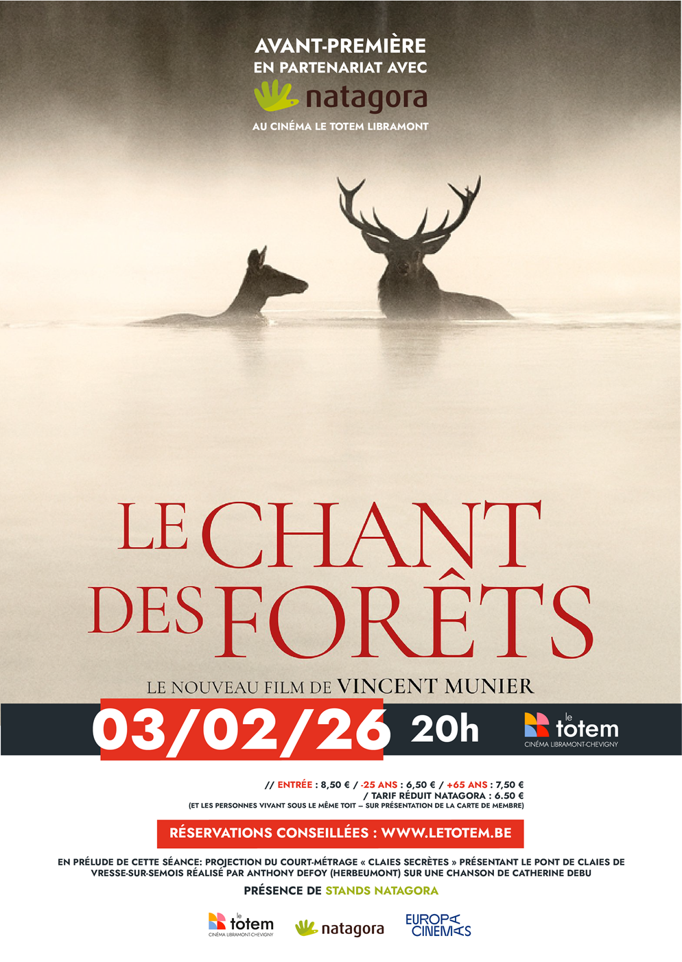 Une soirée spéciale avec Natagora est organisée autour de ce film au cinéma Le Totem de Libramont, le mardi 3 février à 20h, en avant-première. Une occasion unique de se plonger dans l’univers sensible et inspirant de Vincent Munier, entre autres au cœur des forêts vosgiennes.