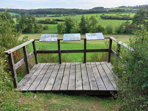 Un banc et un panneau panoramique seront placés dans la réserve naturelle de Behotte aux alentours de la chapelle du maquis à Rochefort devant le paysage des prairies de fauche et de haies.
