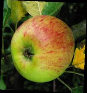 Le fruit est moyen à gros, calvilliforme, de forme assez régulière, aplatie, légèrement conique, généralement plus large que haute.